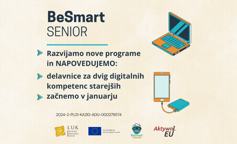 Projekt »BeSmart Senior« je financiran iz programa Erasmus+ KA210-ADU in traja od 1. 2. 2025 do 30. 9. 2026.