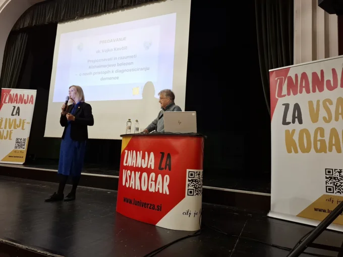 V torek, 25. novembra 2025, smo v dvorani Doma krajanov Primskovo gostili izjemno obiskano predavanje dr. Vojka Kavčiča, uglednega nevroznanstvenika, ki že več kot dve desetletji deluje v ZDA. Predavanje je potekalo v okviru Demenci prijazne točke Ljudske univerze Kranj, njegov namen pa je bil približati sodobne diagnostične pristope in razumevanje Alzheimerjeve bolezni širši javnosti.